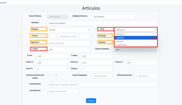 Clave del Artículo: Esta se genera automáticamente de forma consecutiva por el sistema, por lo que no es necesario capturarla manualmente.