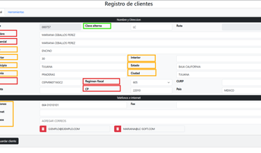 ⚠️ Es fundamental que la información se registre sin errores ni modificaciones, ya que cualquier discrepancia puede generar fallas al momento de timbrar facturas.El formulario de registro está visualmente dividido por colores que indican el tipo de información requerida: