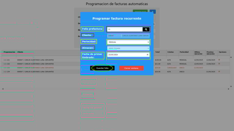 Esto permite llevar un control y seguimiento claro de las facturas automáticas asignadas a cada cliente.