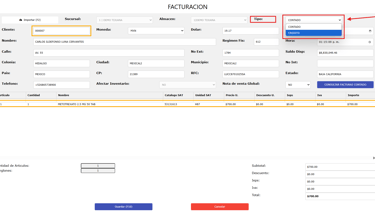 ✅ Importante: Es indispensable verificar y, en caso necesario, modificar el campo "Tipo" para asegurarse de que la información se emita correctamente según la operación realizada.