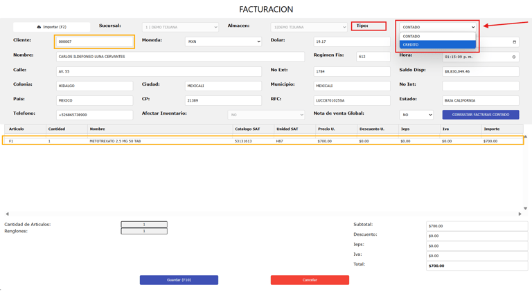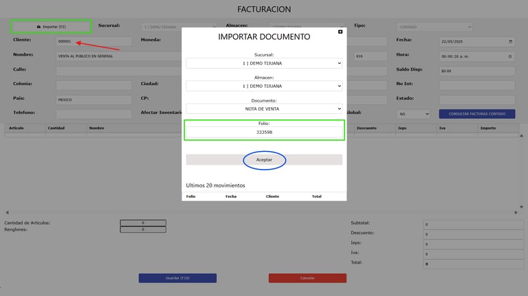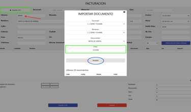Una vez seleccionado el cliente, presiona en el botón Importar (F2) en la parte superior izquierda.
