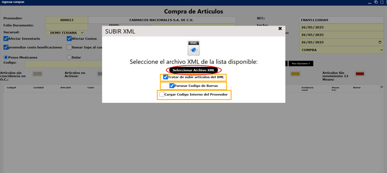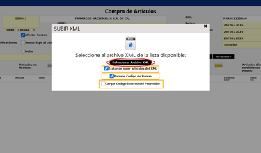 📥 Tratar de subir artículos del XML: importa automáticamente los productos si el proveedor factura con el mismo código de barras que usas en tu sistema.