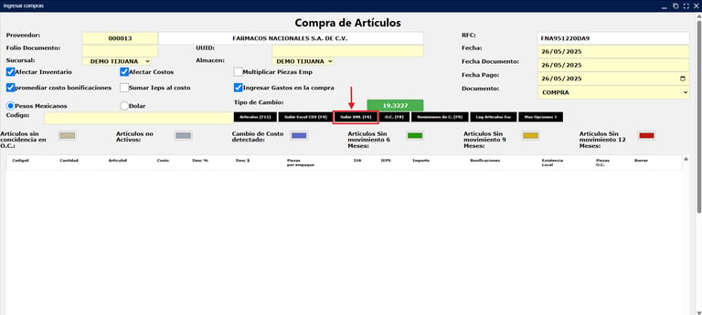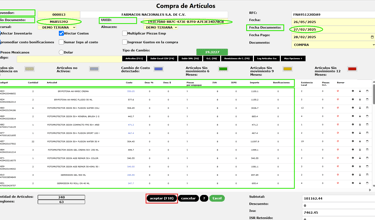 Una vez seleccionado, el XML se cargará automáticamente a la compra, integrando la siguiente información: