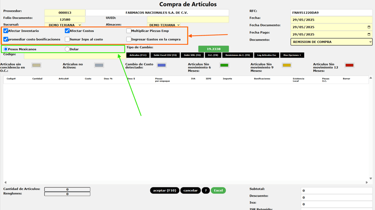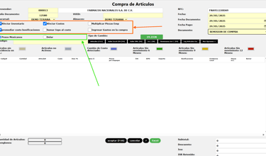 ✅ Afectar Costos: actualiza el historial de costos de los artículos registrados.