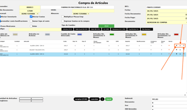 Permite exportar toda la información cargada al sistema (productos, cantidades, importes, impuestos, etc.) en un archivo Excel. Muy útil para validaciones, respaldos o para compartir con otras áreas como compras o contabilidad.