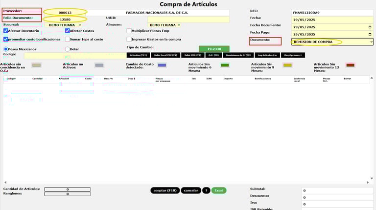 Este proceso permite registrar las compras que aún no han sido facturadas formalmente, manteniendo actualizado el inventario y el seguimiento de las entregas de mercancía.