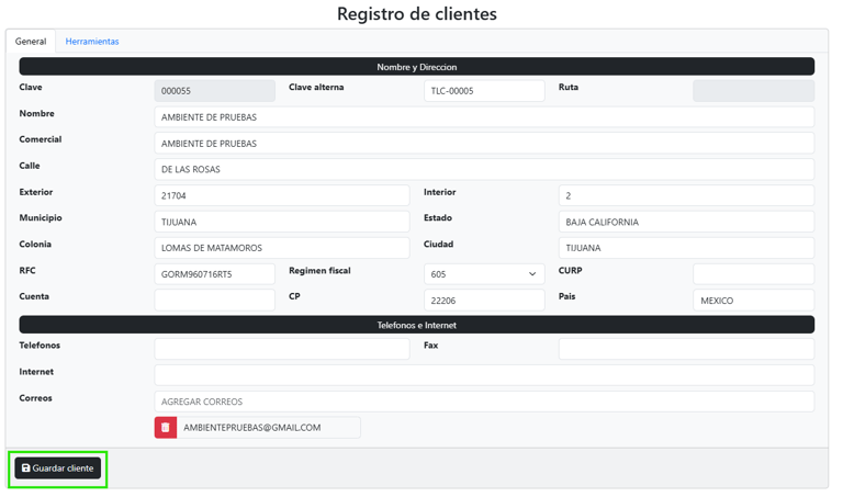 Una vez que realices los cambios necesarios, presiona el botón Guardar para que la información actualizada quede registrada correctamente en el sistema.