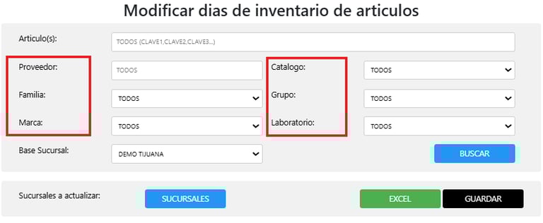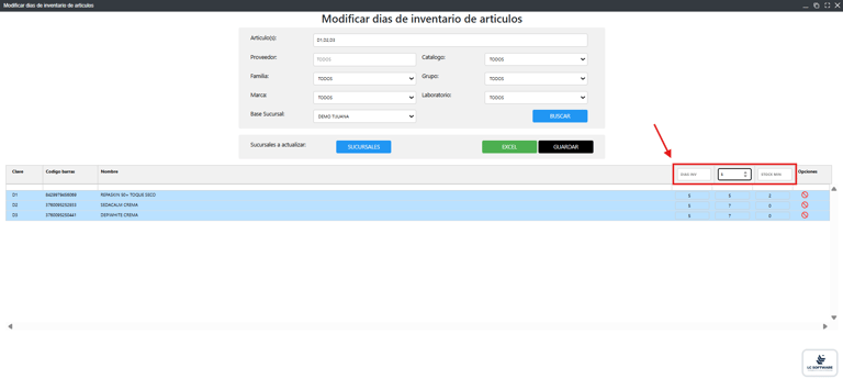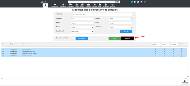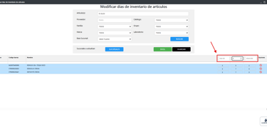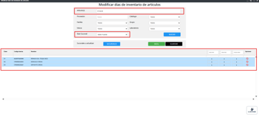 Modificar días de inventario de artículos
