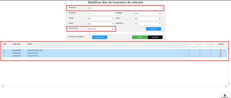✏️ Edición masiva de días de inventario y stock