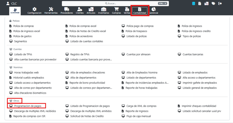 Se ingresa al sistema APP GLOBAL en el módulo de Contabilidad, en la sección “Otros”, seleccionando la opción Programación de pagos.